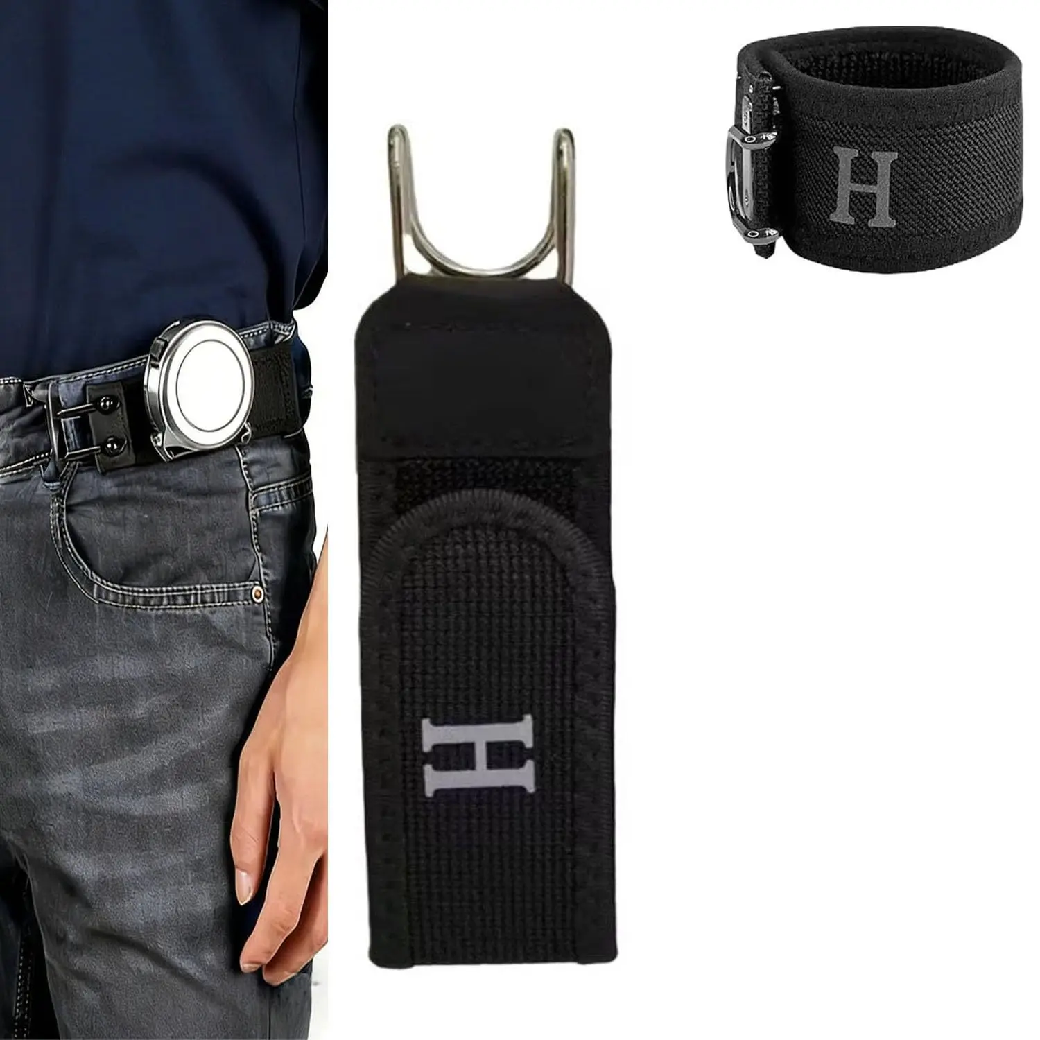 Buckleless Elastic Belt Hook Adjustable Metal Hook Men Women Unisex Buckle-Free Invisible Waist Belt Closure Outdoor Work EDC